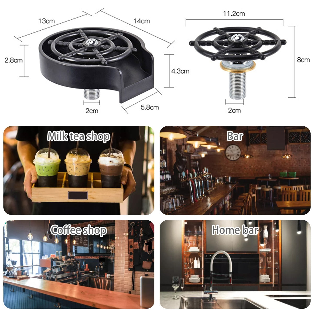 - It is very suitable for cup-washing tools in bars, cafes, restaurants, bars, homes, tea houses, hotels, etc. No electricity, please use cold water. Suitable for red wine glasses, beer glasses, coffee cups, milk jugs, beverage cups, teacups, etc.